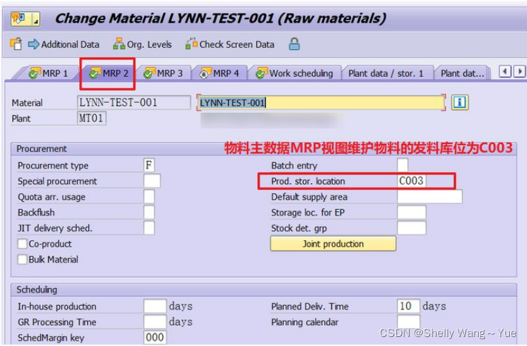 MM01/MM02中MRP2视图,字段prodution storage location中维护