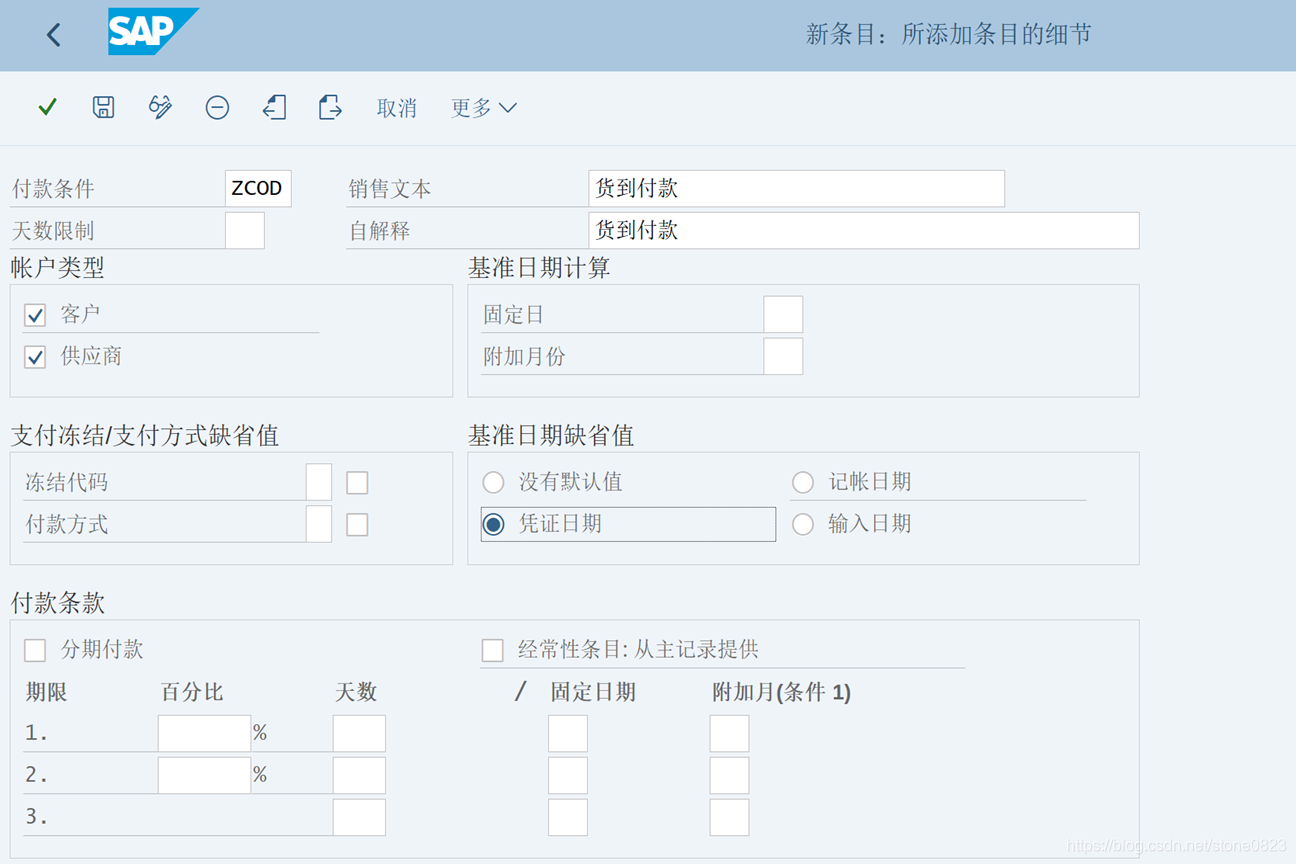 下面以一些常见的付款条件为例,讲解其配置方法和要点。